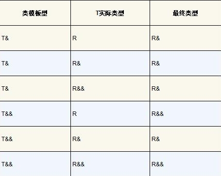 从上面的例子中我们可以看出凡是写出了具体类型的都是右值引用,凡是通过模板或者auto没有具体写明的都是万能引用。为什么会出现这种情况?这里就要说到引用折叠了,请看下面的图一: