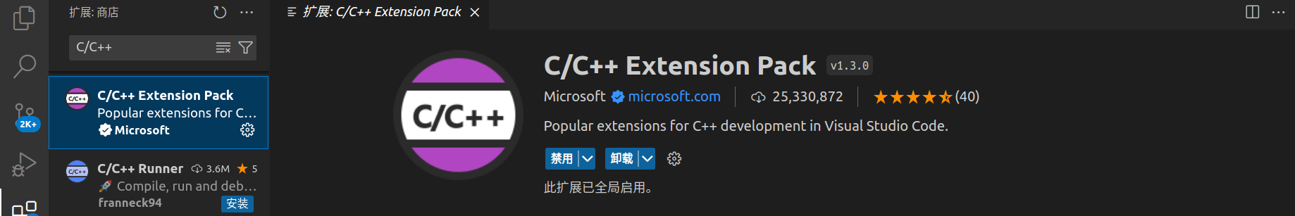 此扩展包会安装C/C++;C/C++ Themes;CMake;CMake Tools四个扩展工具